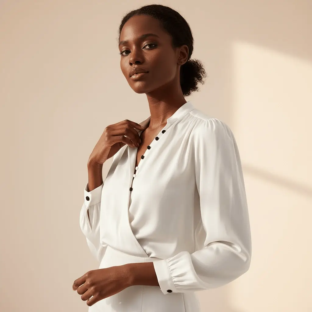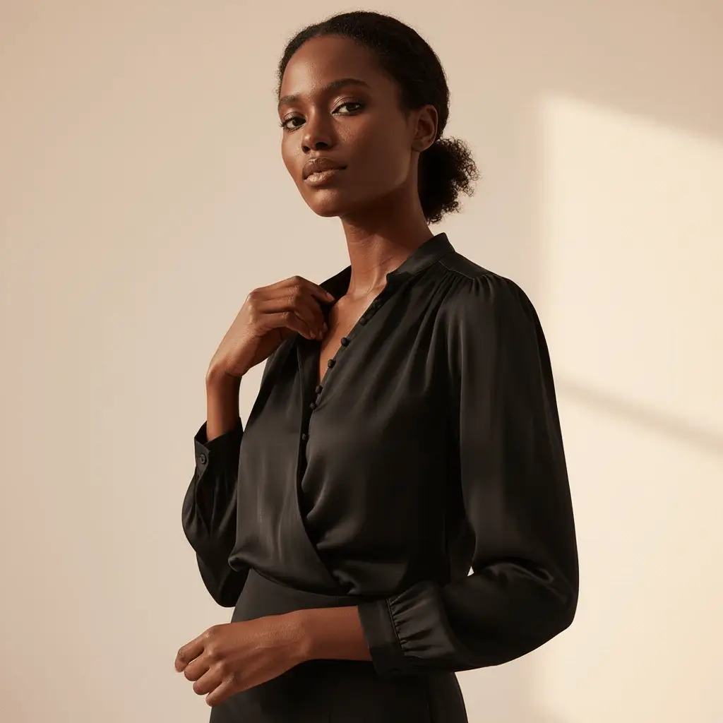 Elevate your style with our Chic Silk Blouse. Crafted from luxurious, lightweight silk, this blouse offers an elegant drape and a comfortable, breathable feel. Perfect for both office wear and evening events, it features delicate button details and a flattering silhouette.